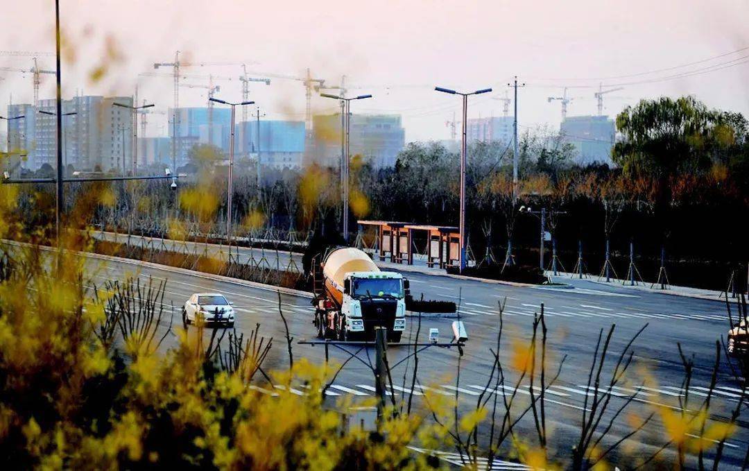 ▲ 11月10日,中心街东延路段,双向八车道整洁宽阔,满足城市经济的不断发展,完善东山区域路网,方便周边居民出行。